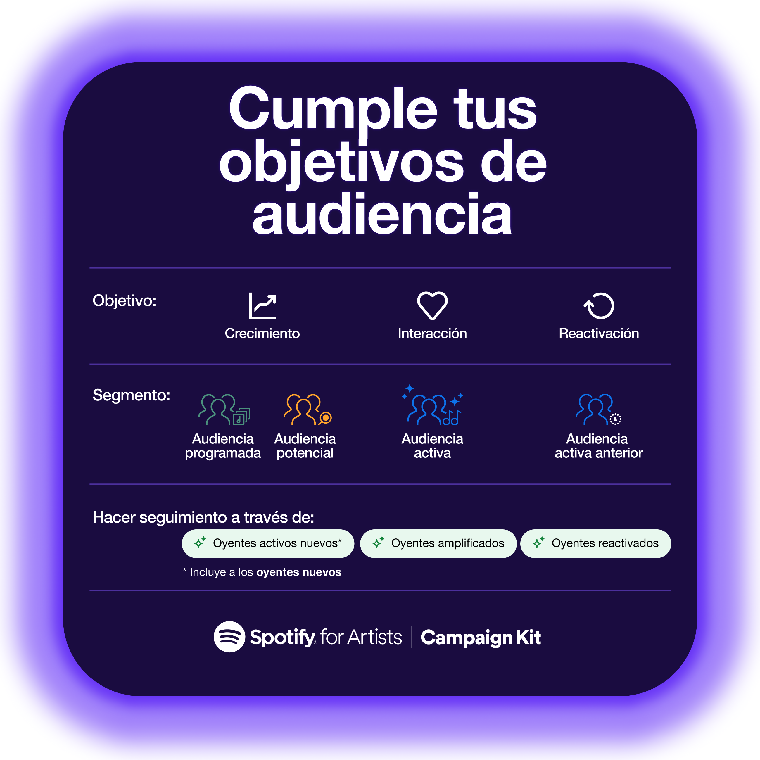 Si tu objetivo es volver a interactuar con los oyentes que no han escuchado tu música en un tiempo, te recomendamos dirigirte a tus oyentes anteriormente activos.